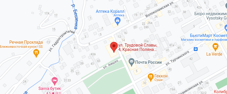 Адрес клиники:Красная Поляна, ул. Трудовой Славы, 4.